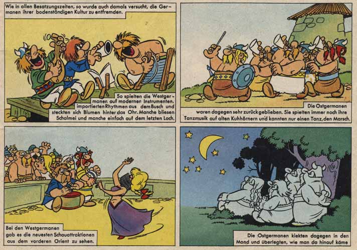 It's KAUKA-Time, liebe Freundinnen und Freunde! Im Jahr 1968 (unser Beispiel) wurden "Fritze Blitz und Dunnerkiel", die Nachfolger des Kauka entzogenen Asterix, in "Siggi und Babarras" umbenannt. Letzterer, wegen seiner "militanen Vergangenheit". "Der Regierung treu ergeben" und immer bereit, sich von ihr "mißbrauchen zu lassen". Dieses Beispiel eines Ost-West-Vergleichs zeigt, dass Kauka die DDR bewunderte - zumindest kulturell.