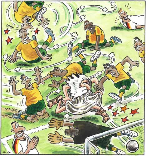 52 Jahre nach dem Wunder von Bern: Als er das trostlose Gekicke der Deutschen nicht mehr länger mit ansehen kann, macht Gott selber das erlösende Tor.