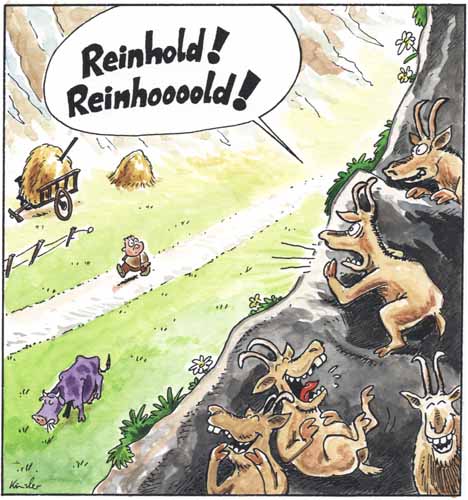 Alle im Dorf kannten die üblen Scherze der Gemsen. Nur Messners Ältester schwor noch Jahrzehnte später, tatsächlich den "Ruf der Berge" gehört zu haben.