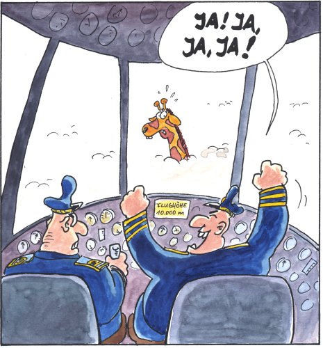Co-Pilot Rainer Carpendale gewinnt unverhofft seine Wette, wonach Giraffenhälse bis zu 10.000 Meter lang werden.
