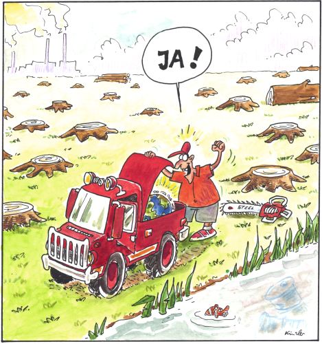 Nachdem der letzte Baum gefällt und der letzte Fluss vergiftet ist, entdeckt Günther, dass er noch eine zweite Erde im Kofferraum hat.