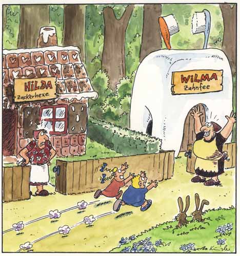 Hänsel und Gretel im Zeitalter der Mundhygiene.